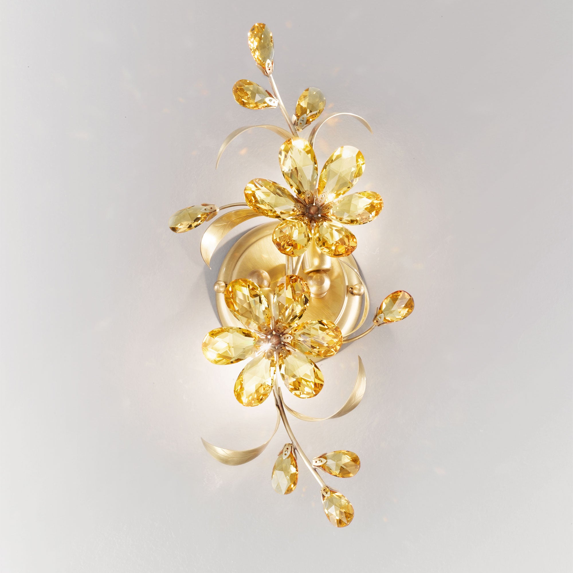 A collection characterized by a liberty line with crystal flowers and sinuous shapes that recall nature. Rich in finishings and colors to decorate and illuminate any space.