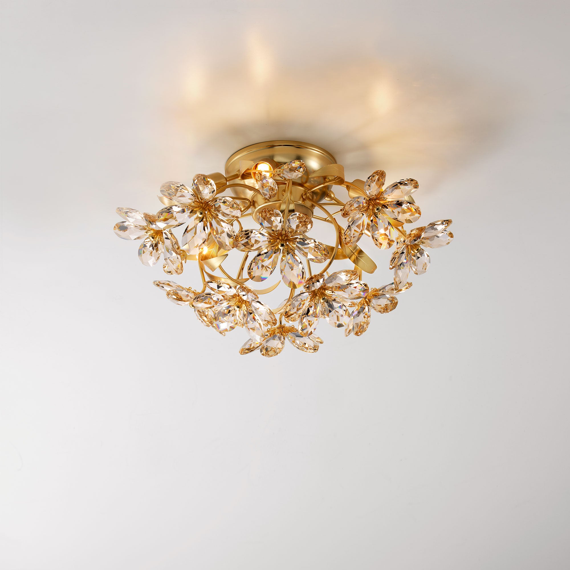 A collection characterized by a liberty line with crystal flowers and sinuous shapes that recall nature. Rich in finishings and colors to decorate and illuminate any space.