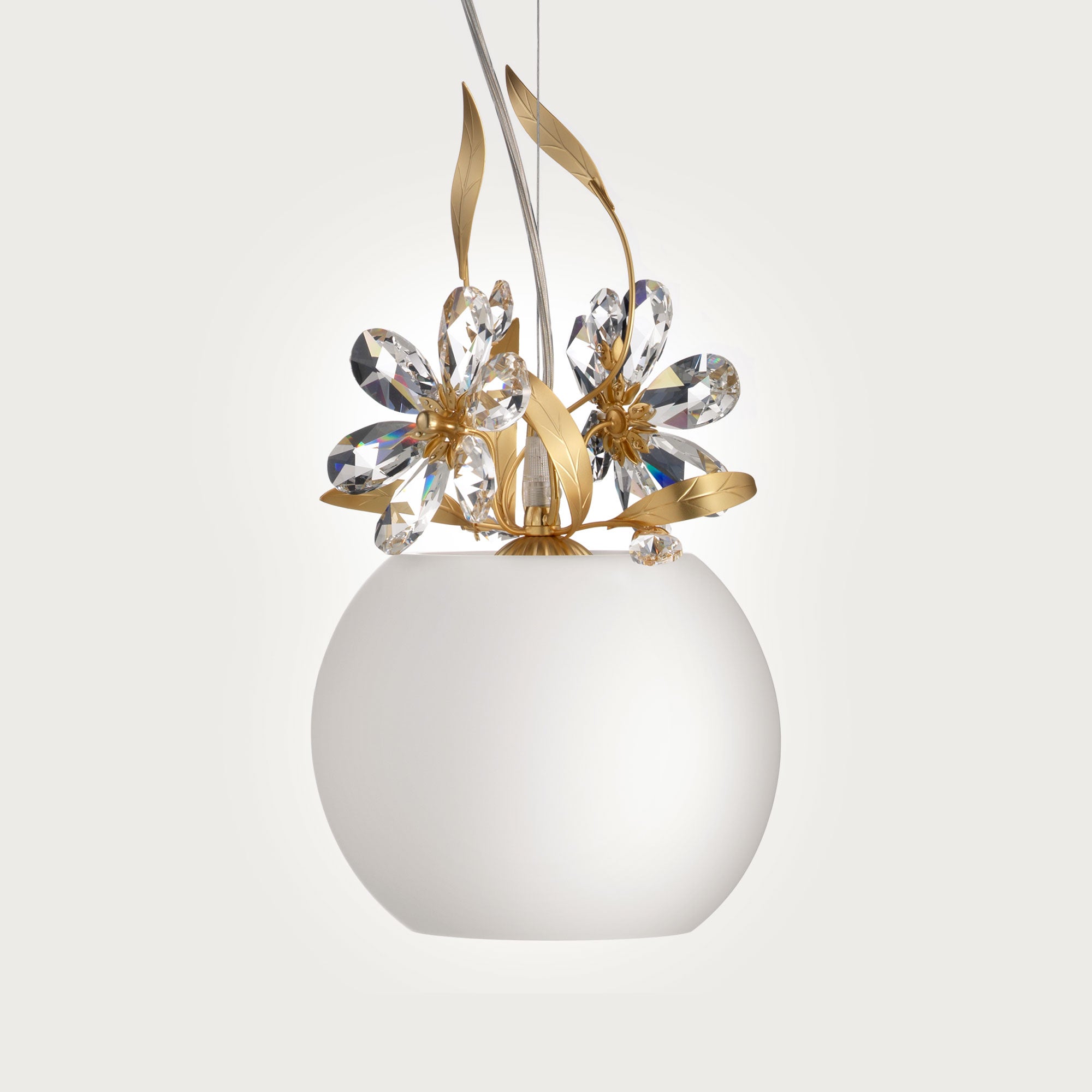 A collection characterized by a liberty line with crystal flowers and sinuous shapes that recall nature. Rich in finishings and colors to decorate and illuminate any space.