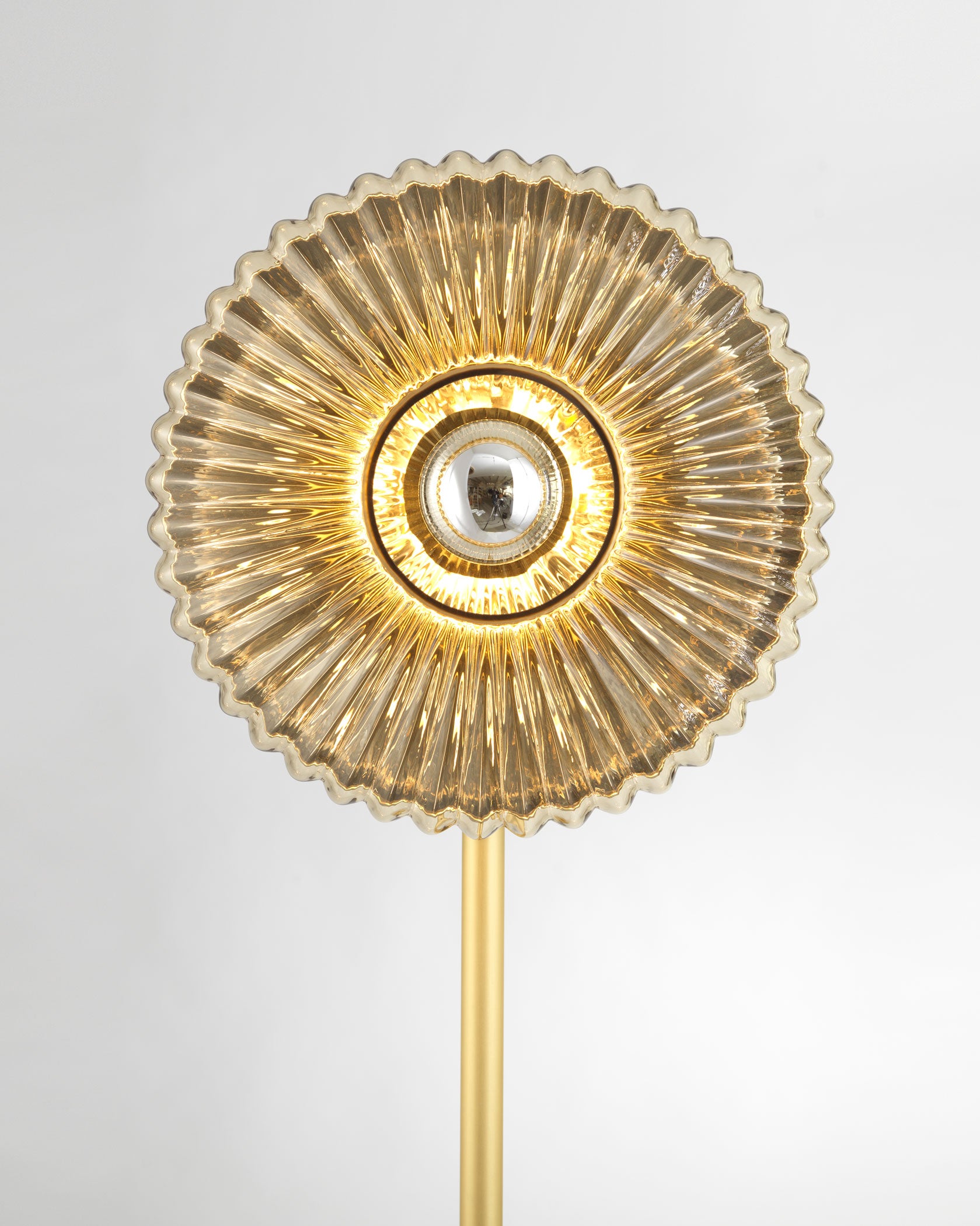 A beautiful article of large dimensions both for its proportions and for the glass used. Wavy glass with a flattened spherical shape, made using traditional historical molds of the Murano art of non-circular blown glass. The end result is a kaleidoscopic effect of light, shades and transparencies.