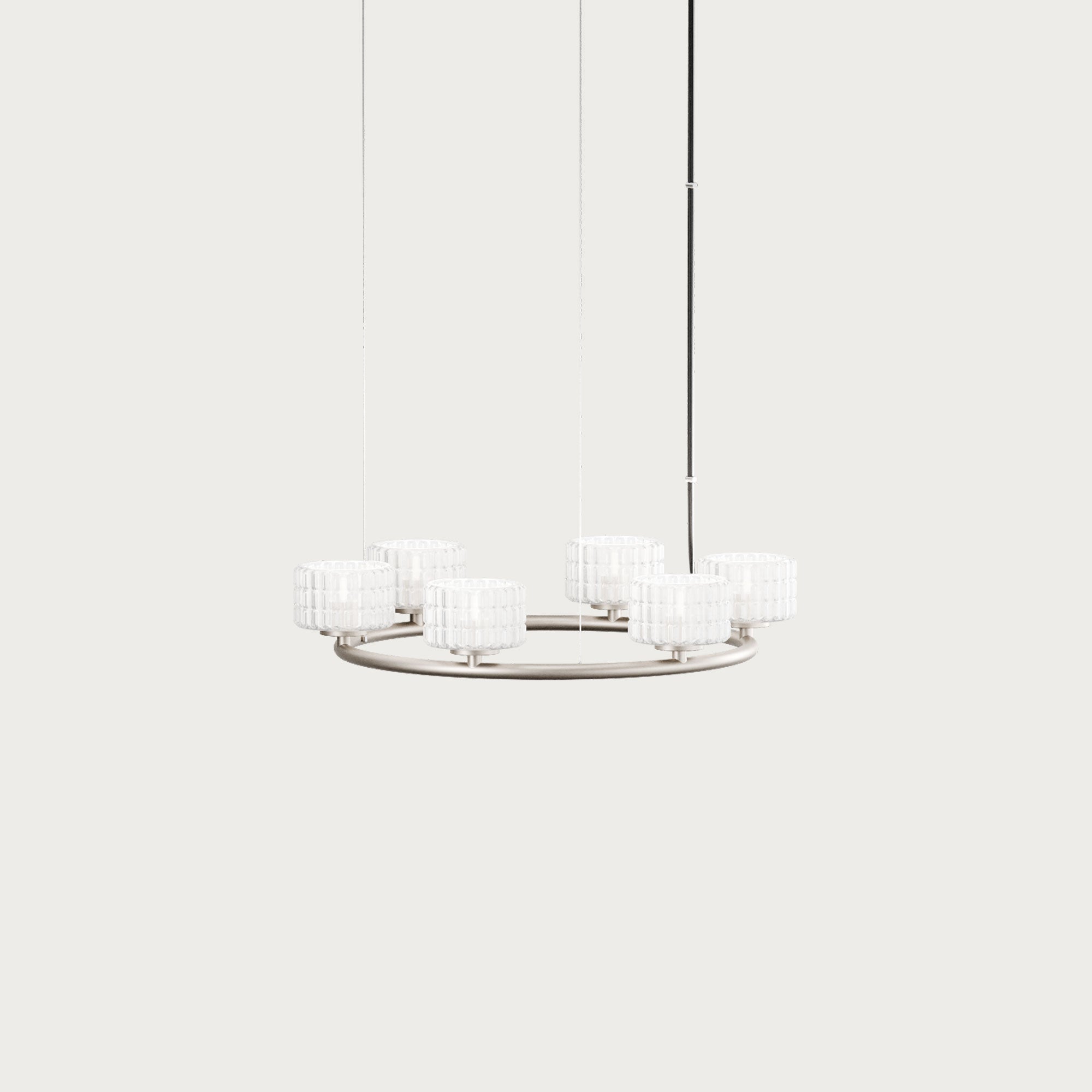This line is characterized by structures with essential lines and important geometric shapes. Items are completed by blown glasses made using antique non-circular plant molds of the Murano glass tradition. The faceted cylindrical shape of the glass creates elegant reflections.